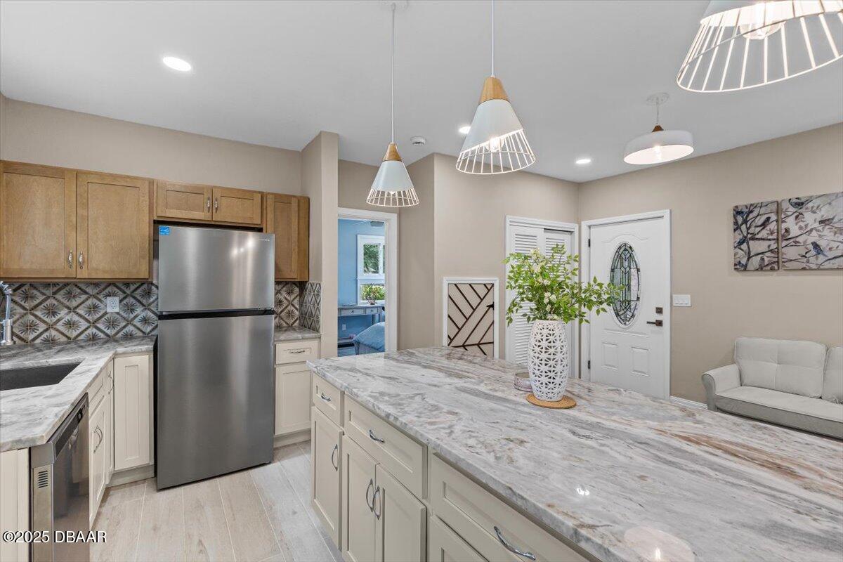 From Granada turn south on A1A to right on Pelican Ave. House is on the Right.